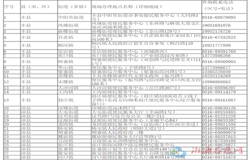 徐州市育儿补贴制度现场办理点及咨询电话一览表