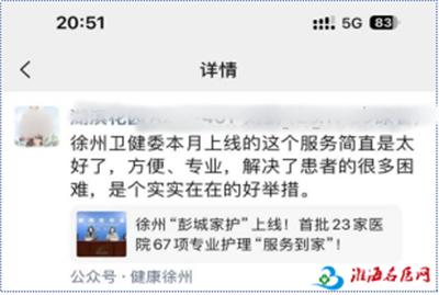 足不出“护”,服务到家——徐州市中心医院“彭城家护”全面开展